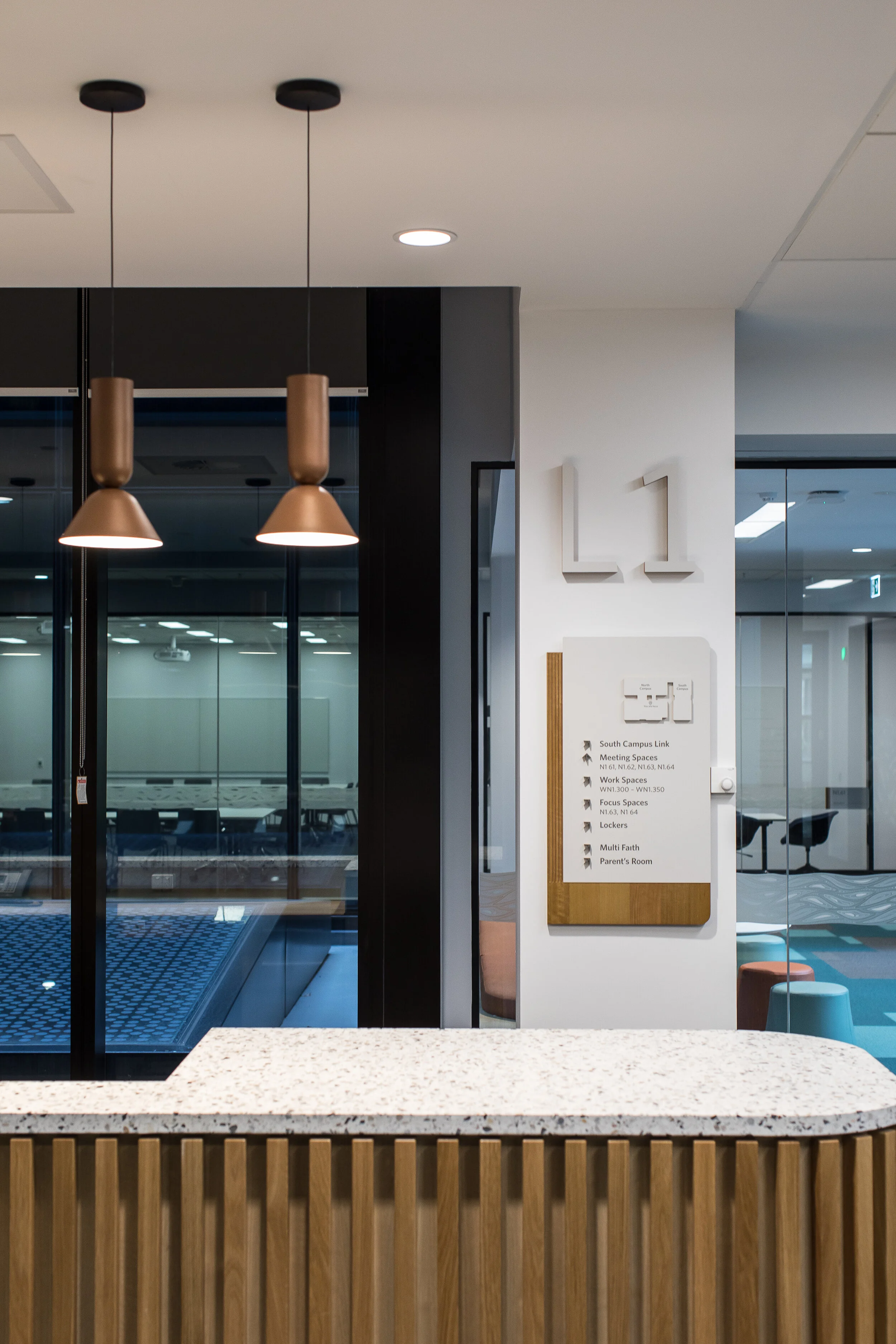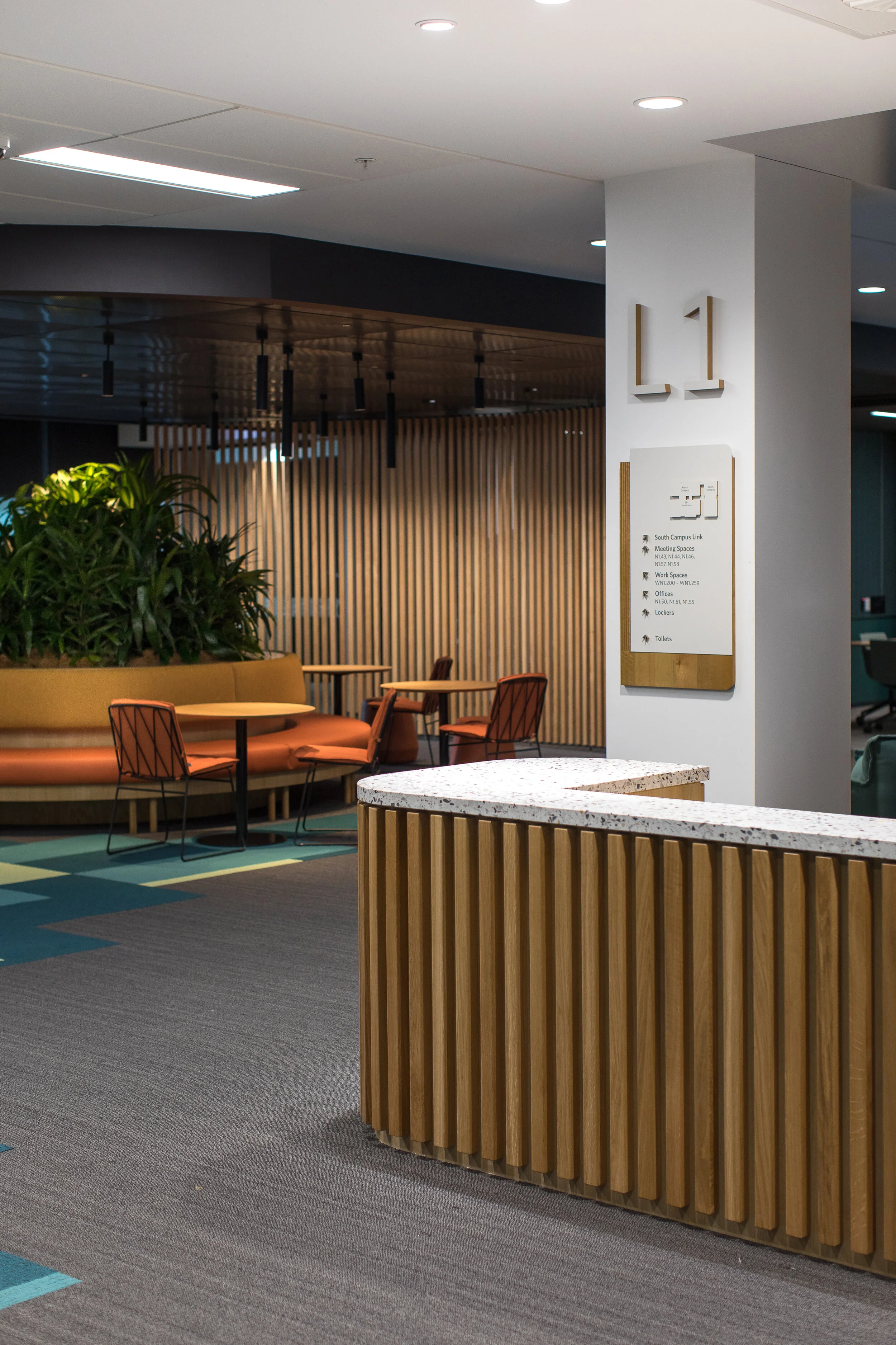 Turner Design recently completed a wayfinding and environmental design project for the repurposed Myer building at Kings Square, Fremantle. Signage and wall graphics were designed for the Department of Communities and the Department of Transport. The signage materiality complements the interior finishes and the design of the wall graphics combines cultural references to visually connect with our indigenous heritage.
