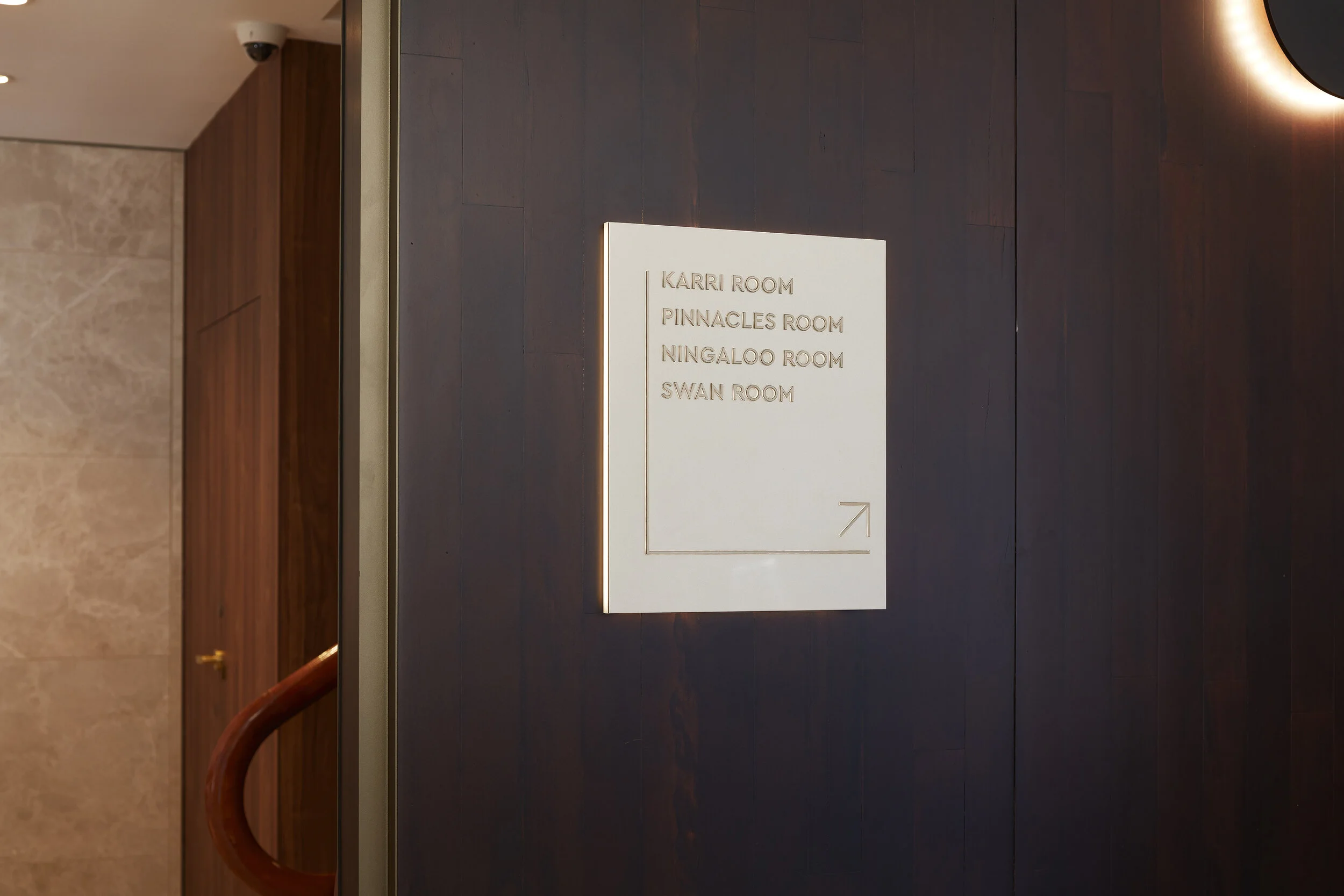 The restrained materials and neutral palette provided the perfect backdrop for the design of the wayfinding signage. Our solution was to create subtle, classic and elegantly crafted signs which perfectly complement the premium hotel brand.